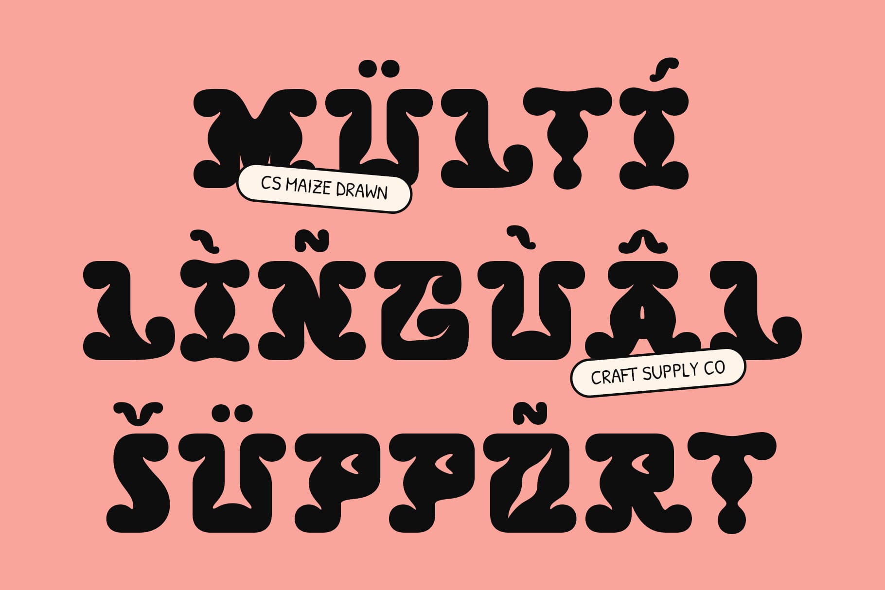 CS Maize Drawn is a display font featuring bold, clean, and decorative letterforms enhanced with a subtle drawn effect. Each character maintains clarity and readability while conveying a striking, artistic presence, making it ideal for designs that need to stand out.