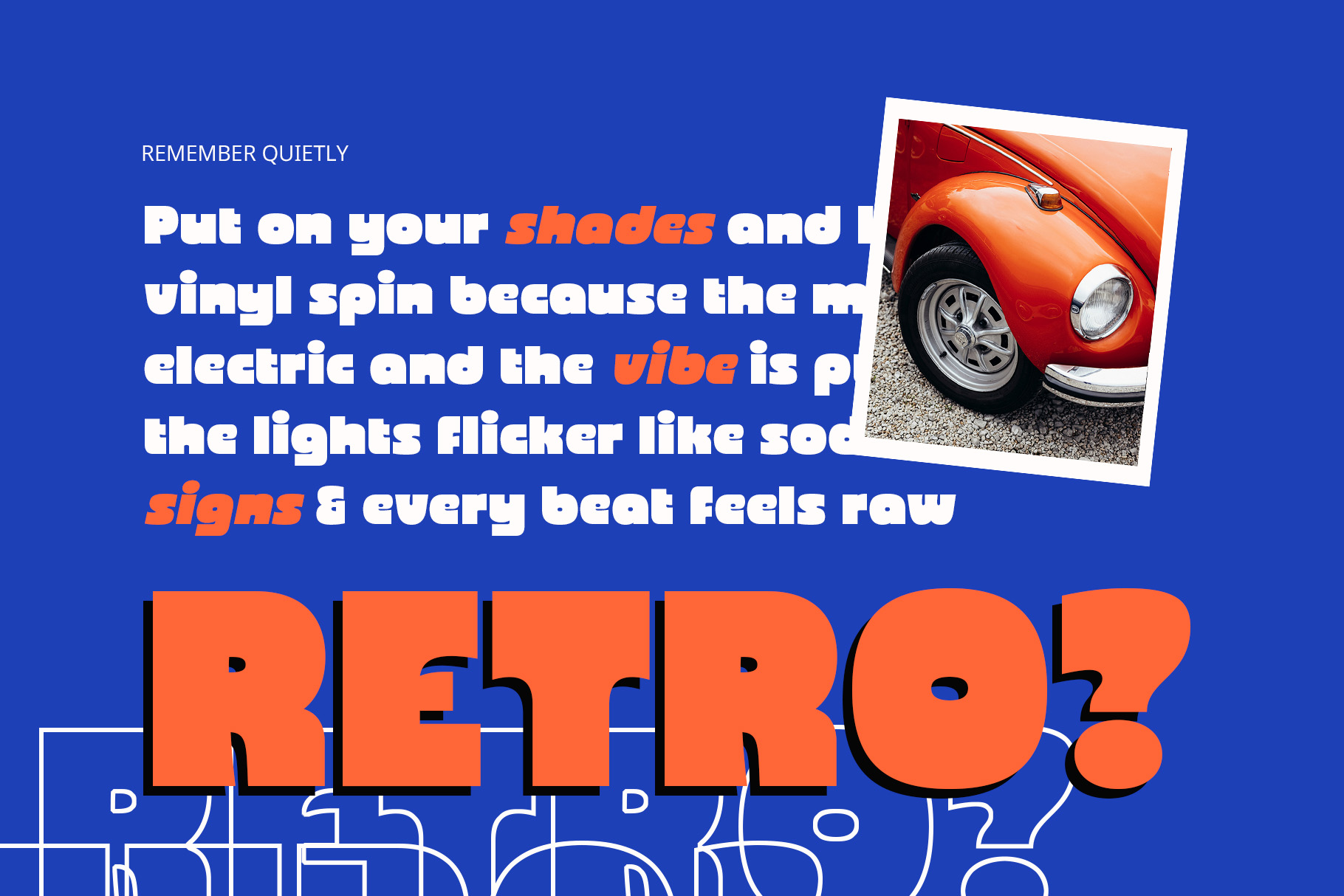 More than just bold, this font carries a unique personality. Its lively, playful edge makes it perfect for designs that want to stand out with strength while keeping a modern, approachable feel. Posters, logos, packaging, and branding projects benefit from its striking look and dynamic presence.